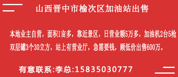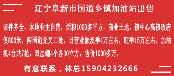 230万广西2025-10-23yzq25102310(黄金)吉林省吉林市某加油站出售,证件齐全,面积2000平,商业土地,加油机2台4枪,双层罐4个各50立方,本地业主自营,日营业3万,柴汽油各半,出售600万可谈。详细联系老陈1